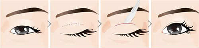 通过眼皮上三个不连续的微小伤口把双眼皮固定,还可同时抽出眼泡脂肪。做出的双眼皮线条自然美观,且创口更小,消肿更快。
